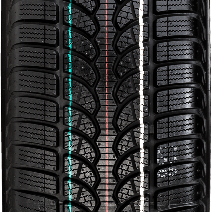 The Bridgestone Blizzak LM80 tyre features a directional tread which can successfully deal with road conditions during even the harshest of winter weather, making it indispensable for when driving on compacted snow or through snowdrifts, deep slush or puddles. The directional design ensures efficient evacuation of water and slush from the surface of the tyre, and thus prevents uncontrolled and unsafe skidding. The tyre is also more than up to the task of driving on compact and slippery snow or ice or on dry roads thanks to the dense network of sipes and blades. The technology used ensures that the Bridgestone Blizzak LM80 tyre delivers outstanding performance in even the most challenging of road conditions, while at the same time guaranteeing a safe yet exciting drive. The model also handles well in urban traffic, maintaining a constant grip and supporting the driver during manoeuvring, cornering and lane changes. The tyre tread is specially reinforced in order to guarantee short braking distances and track stability. The Bridgestone Blizzak LM80 tyre allows every driver to experience a more comfortable and safer drive.