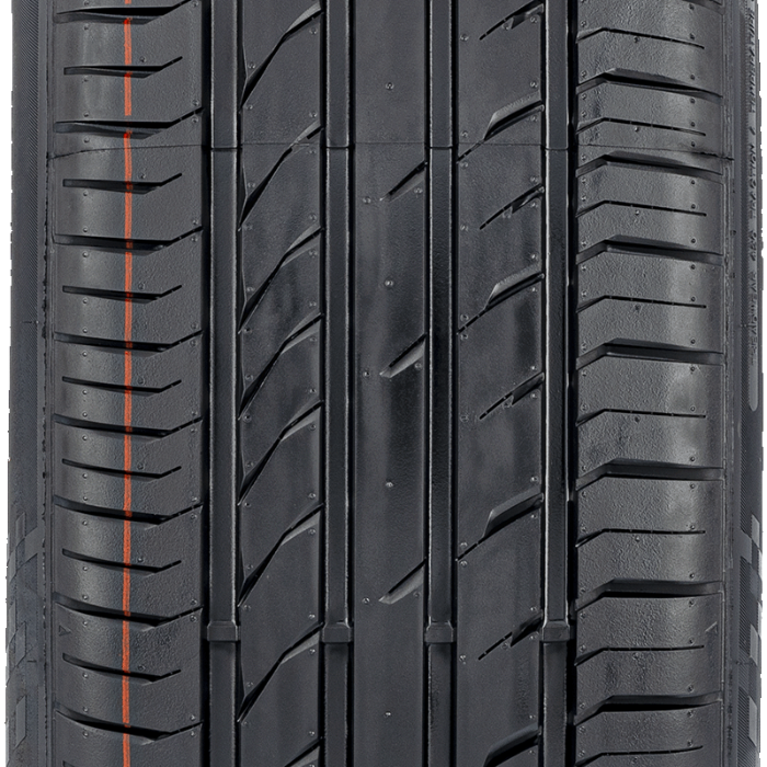 The tyre offers safe driving experience with its tread pattern adapted to summer conditions. The central part has four large grooves complemented by numerous smaller channels. Such a groove system helps in evacuating water, reducing the risk of skidding and increasing safety on rainy days.