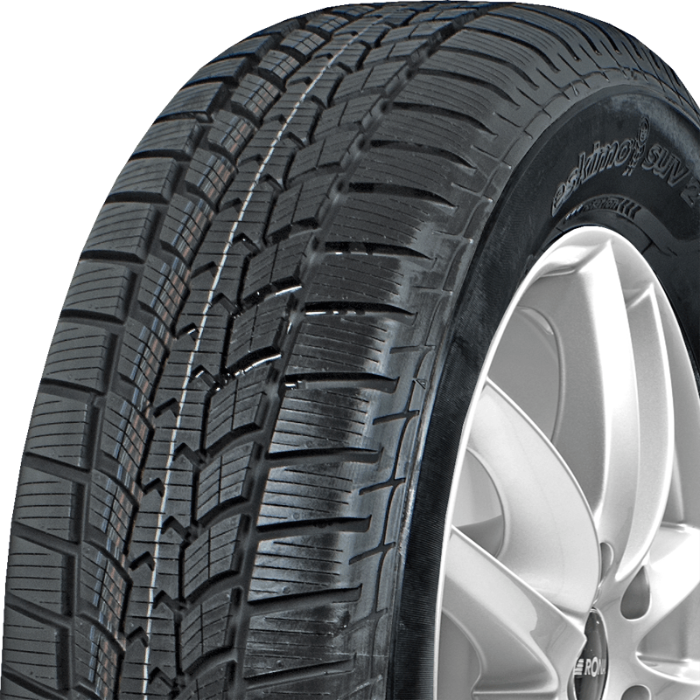 The new technology used in the Eskimo SUV2 tread improves the tyre/road contact area, which helps during driving on icy roads. The driver gains a better control over the vehicle. Additionally, the asymmetric tread pattern, fitted with numerous grooves, provides excellent protection against skidding on wet and snowy surfaces.