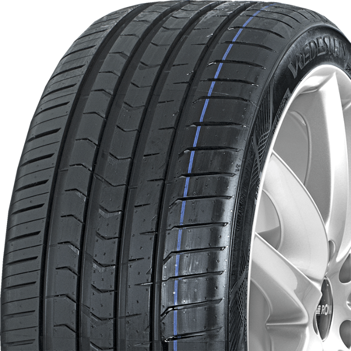 Vredestein Ultrac Vorti is a premium summer tyre intended for daily driving. The model is equipped with an asymmetric tread divided into two independent sections. With this, the model performs very well both on wet and dry surfaces. The wide grooves efficiently drain water from under the crown ply, thus preventing aquaplaning. Thanks to its effective tread drying, the grip remains high no matter the prevailing weather.
